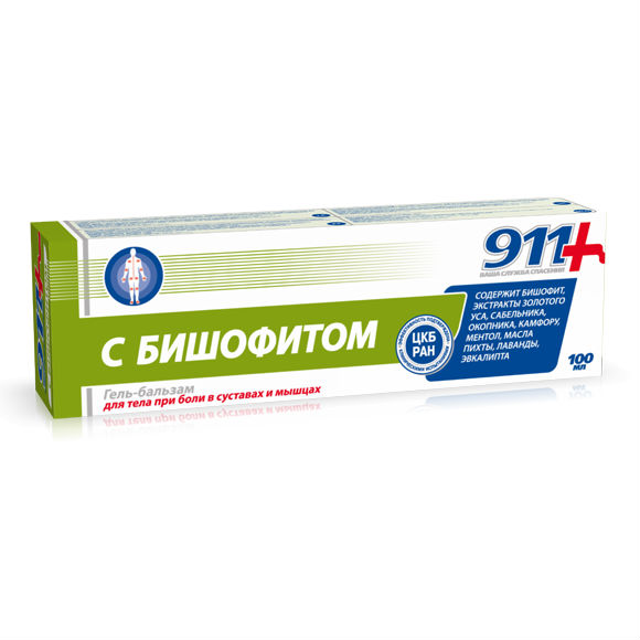 911 гель-бальзам для тела с бишофитом при болях в суставах и мышцах 100мл