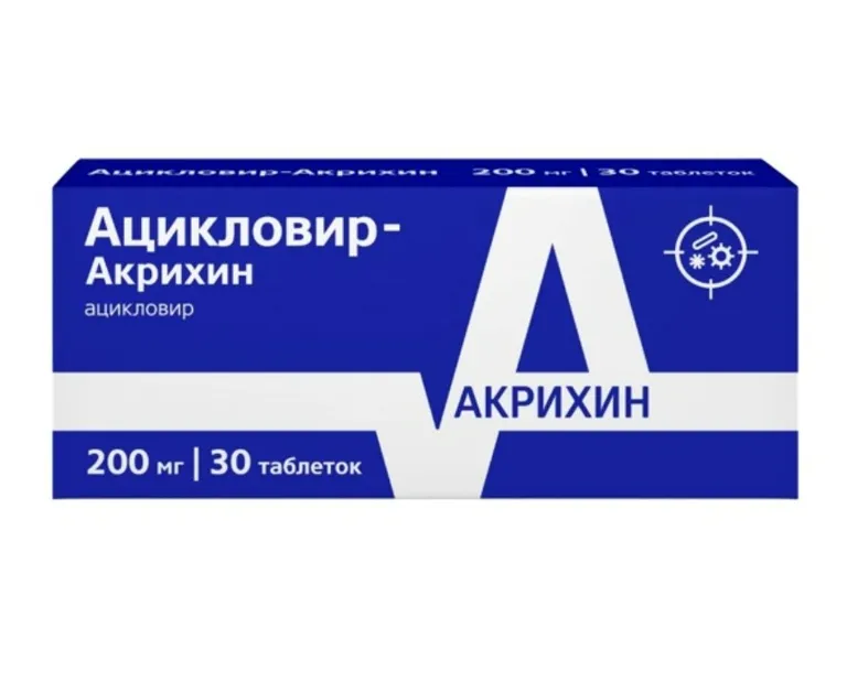 Активное вещество: ацикловир в пересчёте на 100 % вещество — 200 мг и 400 мг