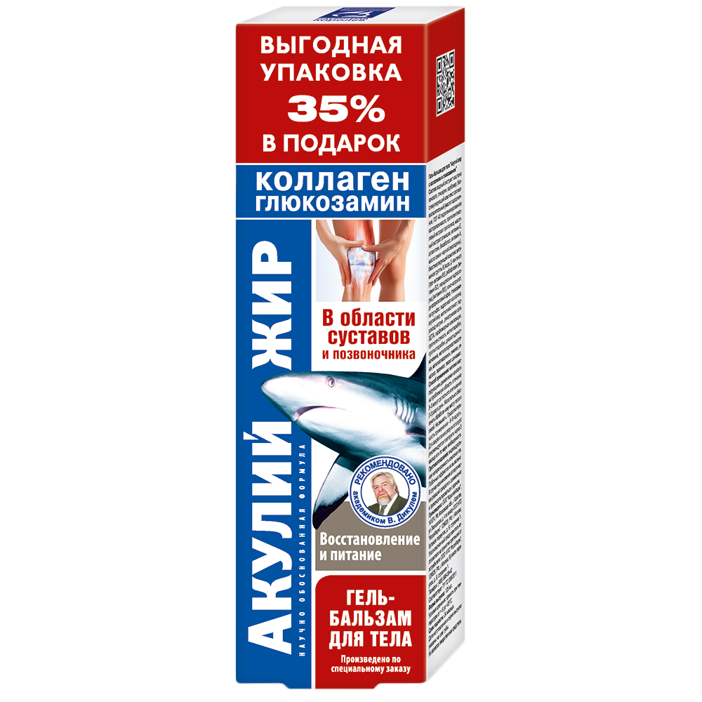 Акулий жир с коллагеном и глюкозамином гель-бальзам для тела в области суставов и мышц 125мл