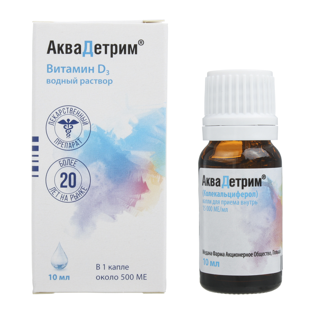 АкваДетрим Витамин D3 капли для приема внутрь 15000 МЕ/мл флакон-капельница 10мл