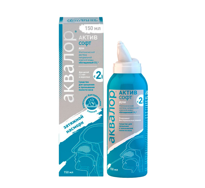 Аквалор актив софт средство для орошения и промывания полости носа для детей и взрослых 150мл