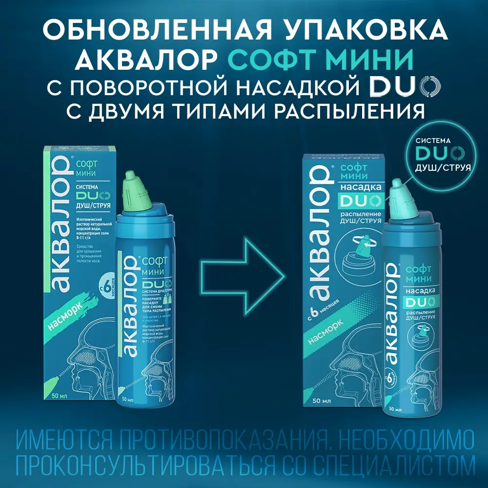 Аквалор софт мини DUO душ/струя средство для орошения и промывания полости носа 50мл