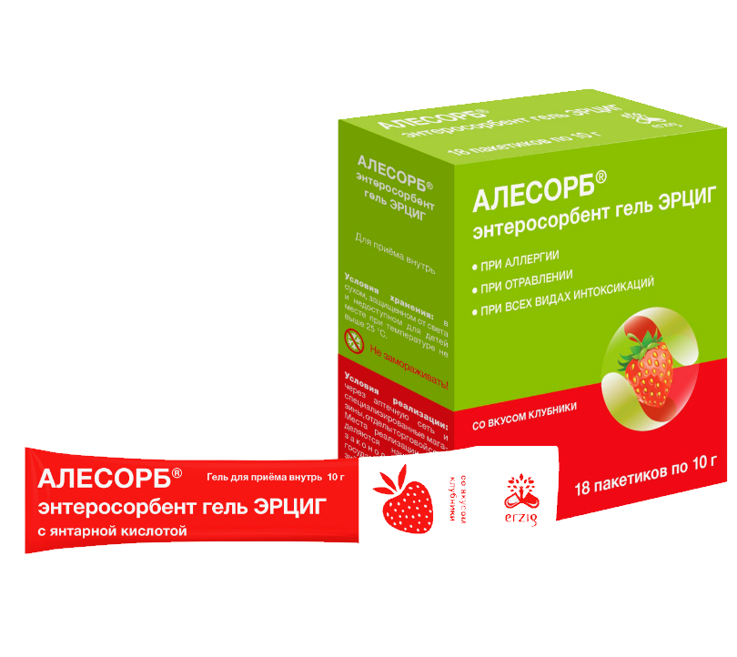 Алесорб энтеросорбент гель Эрциг гель для приема внутрь со вкусом клубники пакетики 10г №18