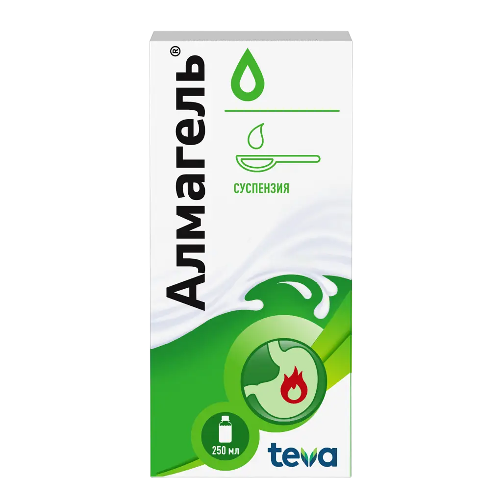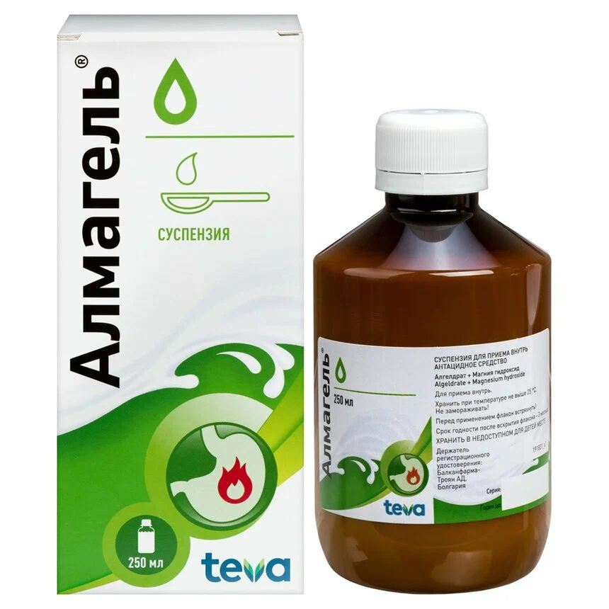 Препарат Алмагель® - лекарственное средство, представляющее собой сбалансированную комбинацию алгелдрата (алюминия гидроксида) и магния гидроксида. Oн нейтрализует свободную соляную кислоту в желудке, снижает активность пепсина, что приводит к уменьшению переваривающей активности желудочного сока. Оказывает обволакивающее, адсорбирующее действие. Защищает слизистую оболочку желудка за счет стимулирования синтеза простагландинов (цитопротективное действие). Это предохраняет слизистую оболочку от воспалительных и эрозивно-геморрагических поражений в результате применения раздражающих и ульцерогенных агентов, таких как этиловый спирт и нестероидные противовоспалительные препараты (например, индометацин, диклофенак, аспирин, ацетилсалициловая кислота, кортикостероидные препараты). Терапевтический эффект после приема препарата наступает через 3-5 минут. Продолжительность действия зависит от скорости опорожнения желудка. При приеме натощак действие длится до 60 минут. При приеме через час после приема пищи антацидное действие может продолжаться до 3 часов.