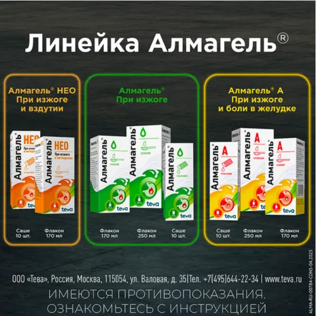 Препарат Алмагель® не содержит сахара, что позволяет принимать его пациентам с сахарным диабетом.