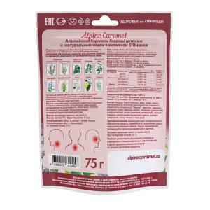 Alpine Caramel Альпийская Карамель леденцы детские с натуральным медом и витамином С Вишня пакет 75г