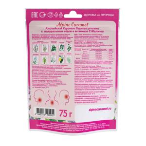 Alpine Caramel Альпийская Карамель леденцы детские с натуральным медом и витамином С Малина пакет 75г