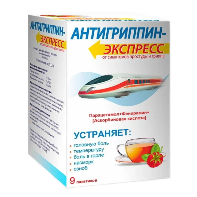 Антигриппин-Экспресс порошок для приготовления раствора для приёма внутрь малина пакетики 13,1г №9