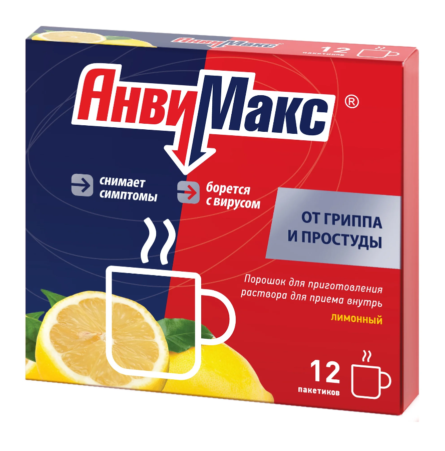 АнвиМакс порошок для приготовления раствора для приёма внутрь лимонный пакетики 5г №12