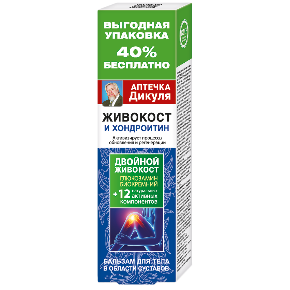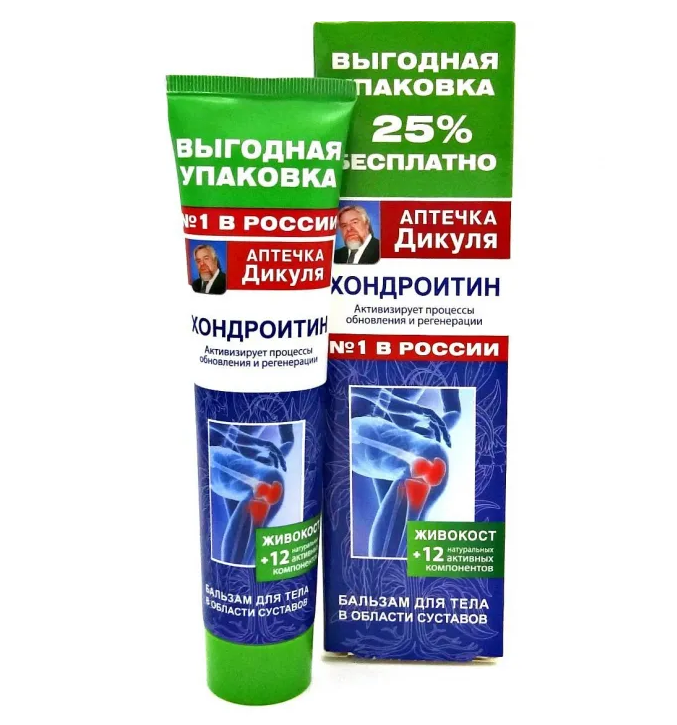 Аптечка Дикуля Живокост и хондроитин бальзам для тела в области суставов туба 125мл