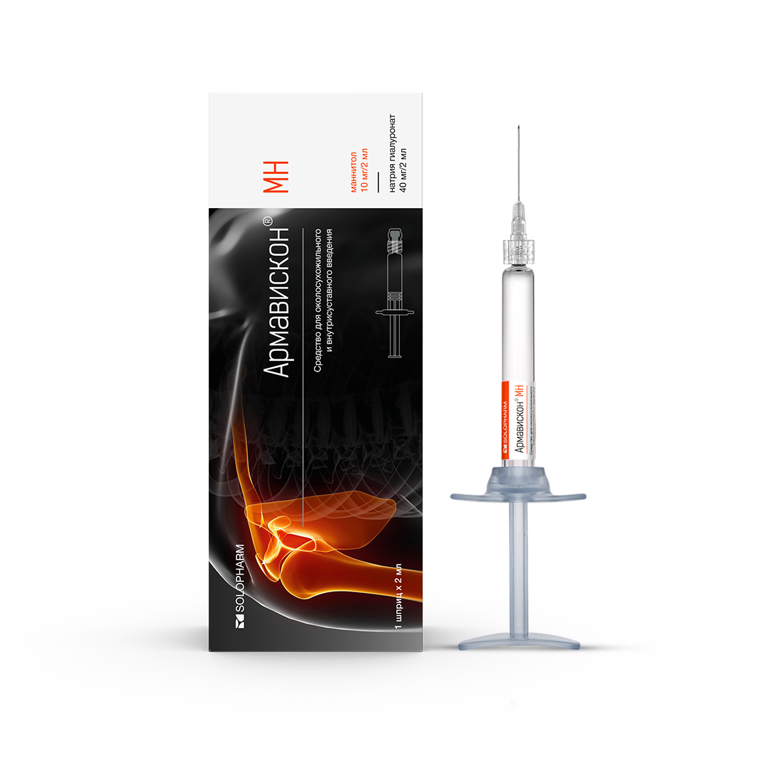 Средство Армавискон® МН является протезом синовиальной жидкости сустава в преднаполненных шприцах. Применяется на фоне дегенеративных изменений поверхности синовиального хряща для улучшения подвижности суставов, уменьшения болевого синдрома, снижения воспалительных реакций и восстановления гомеостаза в хряще.