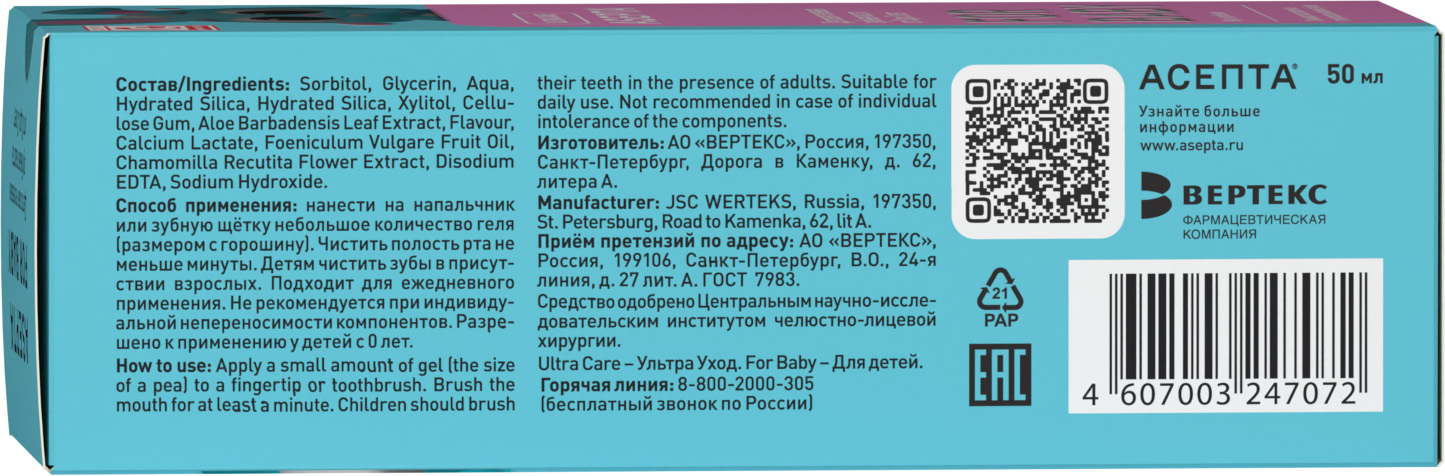 Благодаря приятному вкусу Тутти-фрутти, зубная паста «АСЕПТА baby» помогает сформировать у ребёнка навык ежедневной гигиены ротовой полости.