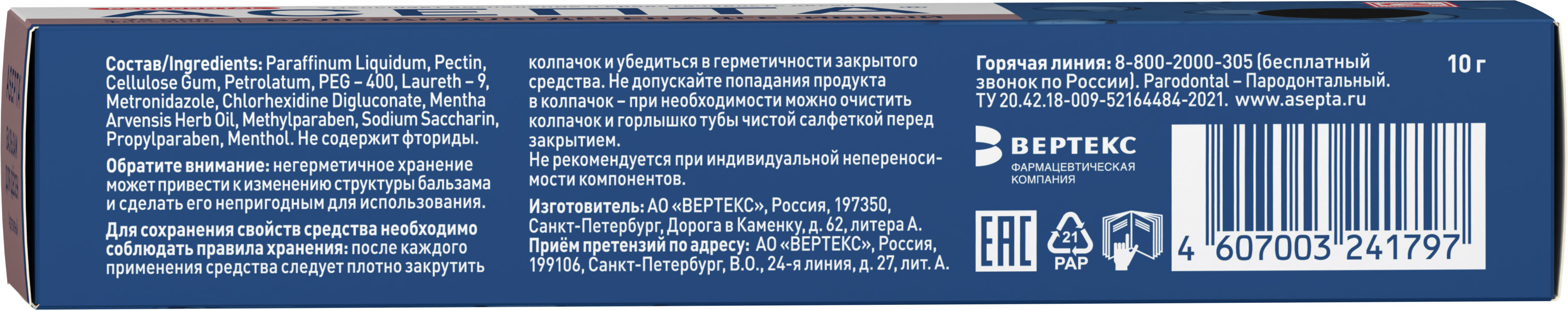 - Для профилактики обострений хронического гингивита и пародонтита бальзам «АСЕПТА®» применяют 2 раза в день в течение 7-10 дней.