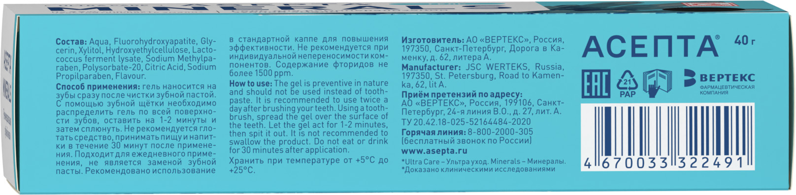 Асепта гель для зубов реминерализирующий туба 40г