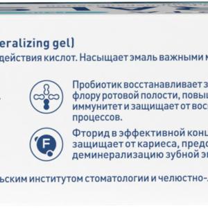 Состав разработан с учетом особенностей строения эмали зубов и позволяет эффективно справляться с комплексом проблем пародонта. Также Гель для реминерализации поможет улучшить внешний вид зубов, осветлить их и снизить частоту проведения процедуры отбеливания.