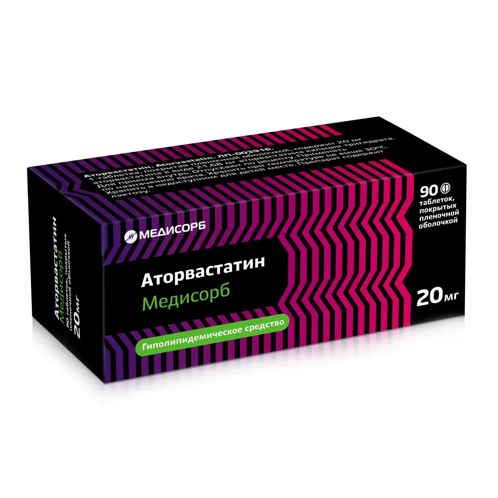 Аторвастатин Медисорб таблетки покрытые плёночной оболочкой 20мг №90
