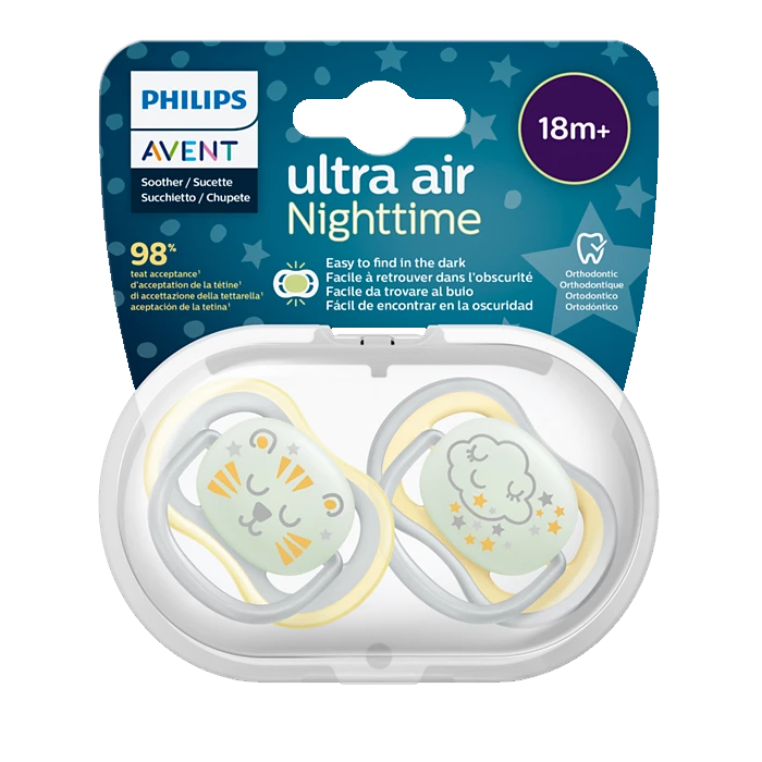 Авент ultra air night пустышка силиконовая 18+ мес SCF376/01 с футляром №2