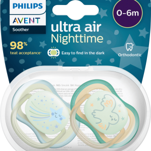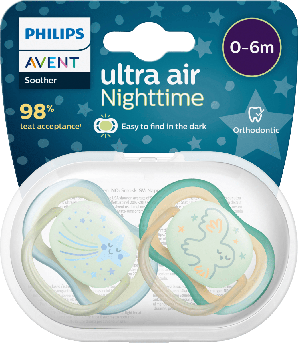 Авент ultra air nighttime пустышка силиконовая ночная 0-6месяцев SCF376/18 с футляром №2