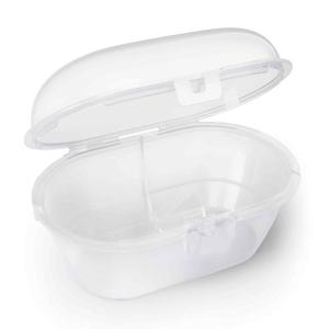 Положите в футляр хорошо промытые пустышки, добавьте 25 мл воды и поставьте его в микроволновую печь на 3 минуты при мощности 750-1000 Вт. Охладите в течение 5 минут, вылейте из футляра воду - и процесс завершен!