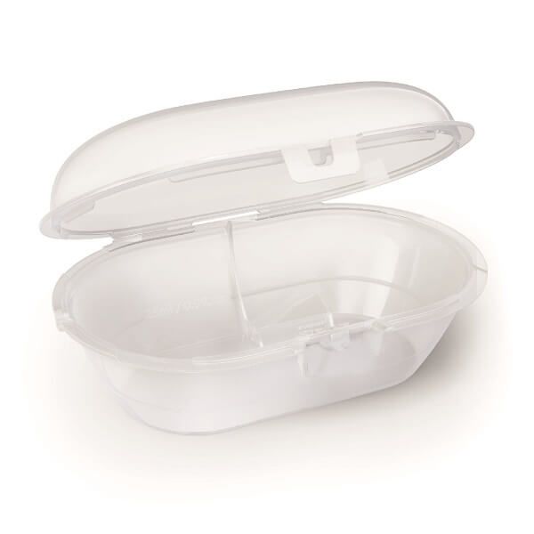 В комплекте один футляр для стерилизации и хранения, который можно мыть в посудомоечной машине. Дорожный футляр ultra air выполняет функцию стерилизатора - вам просто нужно добавить воды и положить его в микроволновую печь. Пустышка вновь будет чистой перед следующим использованием.
