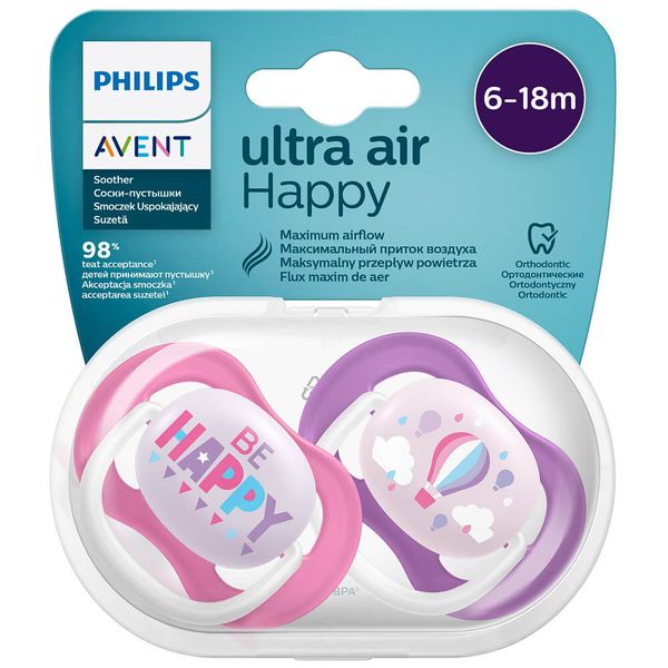 Авент ultra air пустышка силиконовая для девочек 6-18месяцев SCF080/16 с футляром №2