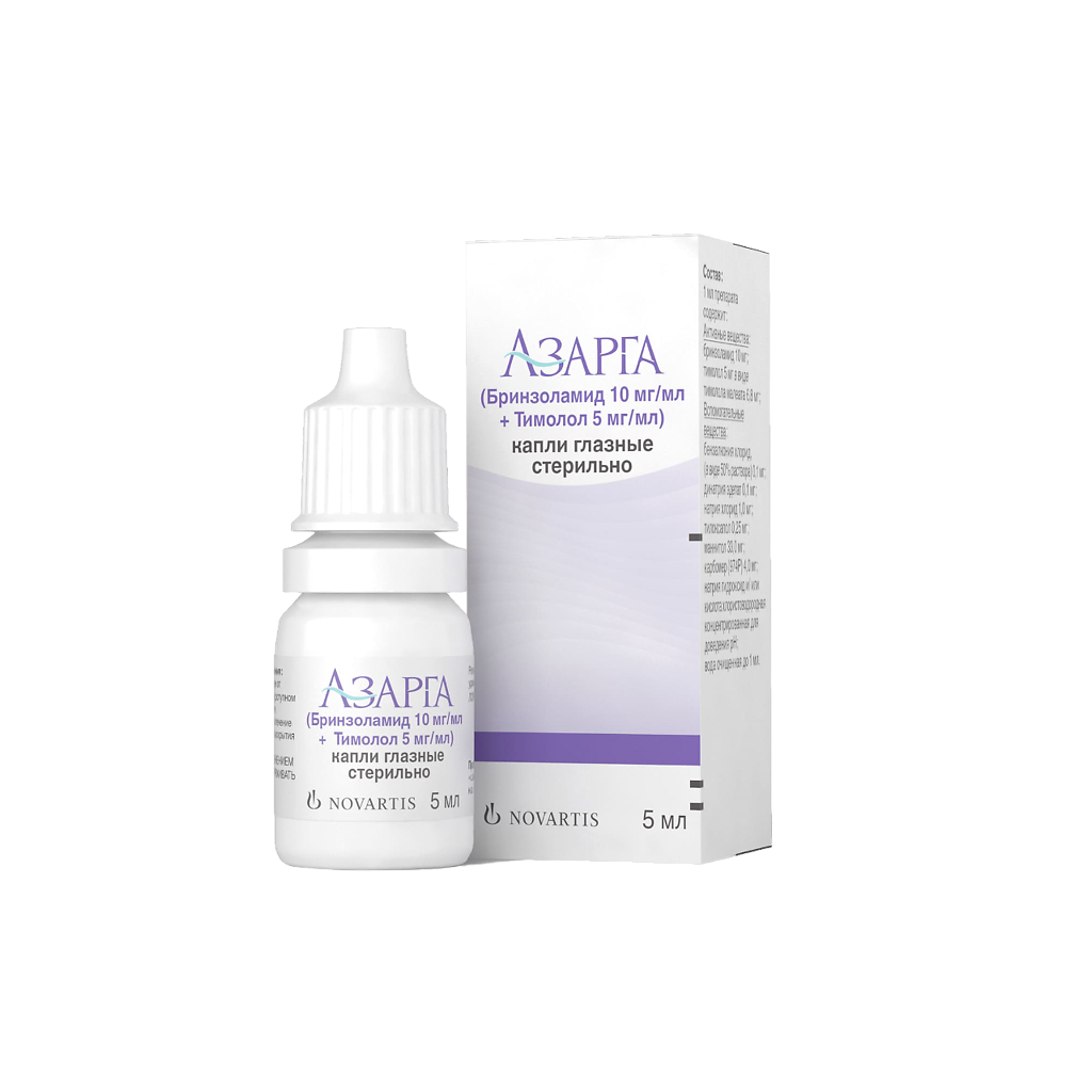 Препарат АЗАРГА содержит два активных вещества: бринзоламид и тимолола малеат, которые снижают повышенное внутриглазное давление, в первую очередь, за счёт снижения секреции внутриглазной жидкости, однако различными путями. Комбинированное действие бринзоламида и тимолола превышает действие каждого вещества в отдельности для снижения внутриглазного давления.