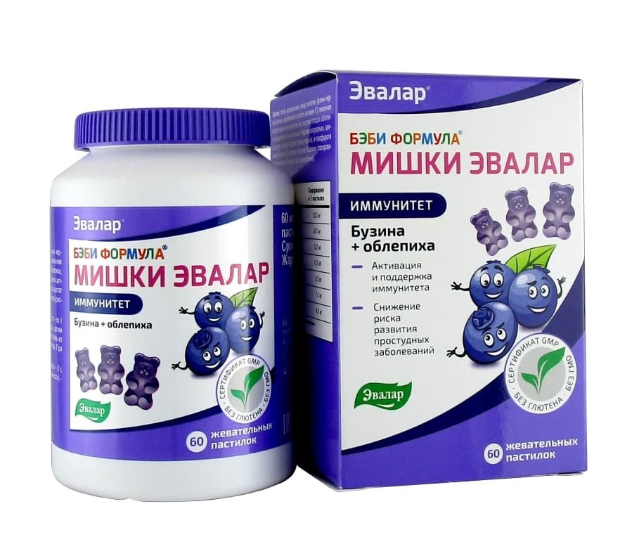 Обратите внимание на современный комплекс для поддержки иммунитета Бэби Формула Мишки Иммунитет от компании «Эвалар». Это первый1 и единственный2 витаминный комплекс для детей, который помимо облепихи содержит бузину! Это поистине сильный дуэт – бузина и облепиха – который в комплексе с витаминами С, Е и цинком способствует естественной активации и поддержке иммунитета, а также снижению риска развития ОРВИ.