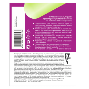 Применять только по назначению согласно инструкции. При неправильном применении беруши могут травмировать слуховой канал. При возникновении дискомфорта во время применения следует незамедлительно вынуть беруши из ушей. Не разрезать и не разрывать беруши. Не глотать. Дети младше 12 лет должны применять беруши под присмотром родителей.