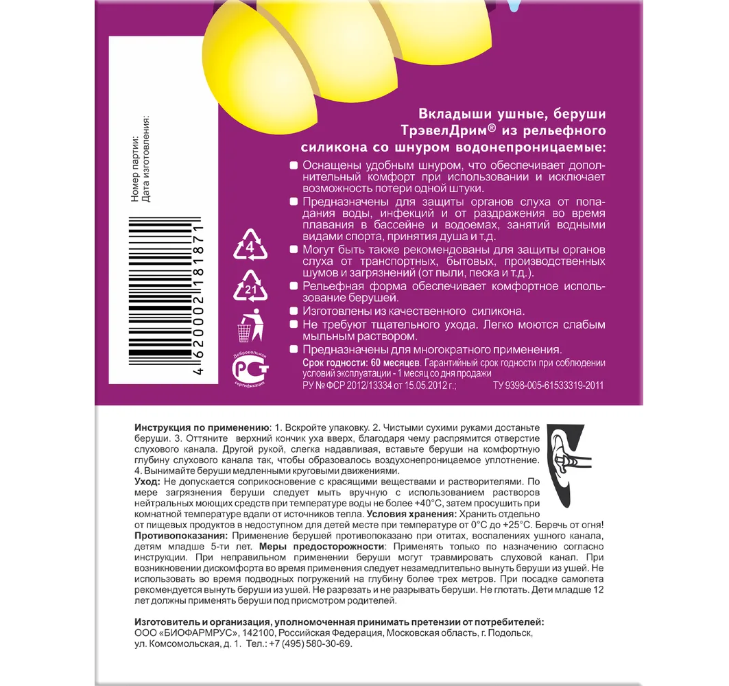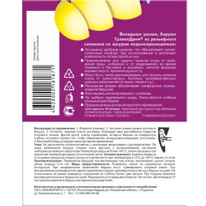 Могут быть также рекомендованы для защиты органов слуха от транспортных, бытовых, производственных шумов и загрязнений (от пыли, песка и т.д.).