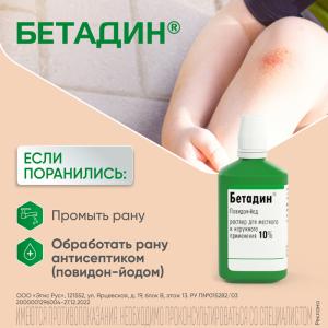 Бетадин раствор для местного и наружного применения 10% флакон 120мл