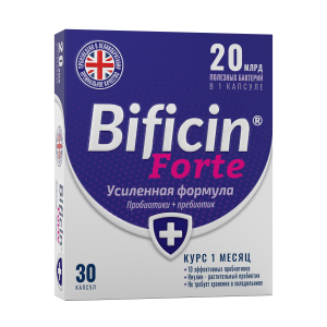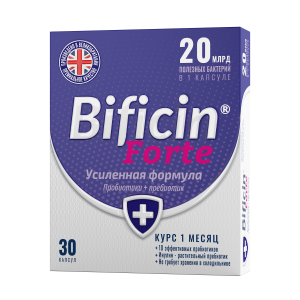 Уникальная формула BIFICIN® FORTE сочетает пробиотические микроорганизмы и пребиотик, что способствует восстановлению микрофлоры кишечника и уменьшает проявления антибиотико-ассоциированной диареи.