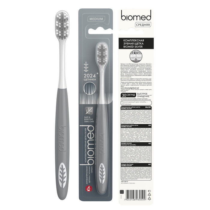 Сколько стоит Biomed Silver medium комплексная зубная щетка №1 - цена и отзывы