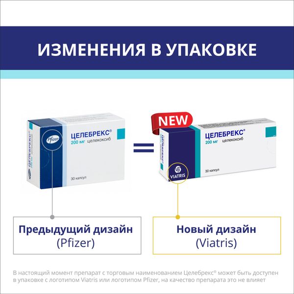 Активное вещество: Целекоксиб — 100 мг/ 200 мг/ 400 мг.