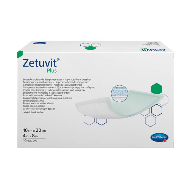 Повязка суперабсорбирующая стерильная Zetuvit® plus/Цетувит плюс представляет собой стерильную суперабсорбирующую повязку, применяемую на поверхностных, умеренно и обильно экссудирующих ранах. Абсорбирующий внутренний слой (основа) впитывает и связывает экссудат.