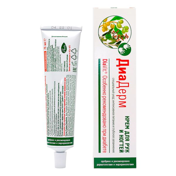 Крем ДиаДерм предназначен для ухода за очень сухой, шелушащейся, загрубевшей кожей рук, слоящимися и ломкими ногтями, трещинами на кончиках пальцев.