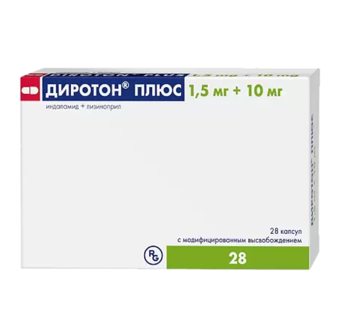 Диротон® Плюс представляет собой комбинированный препарат с фиксированными дозами лизиноприла и индапамида.