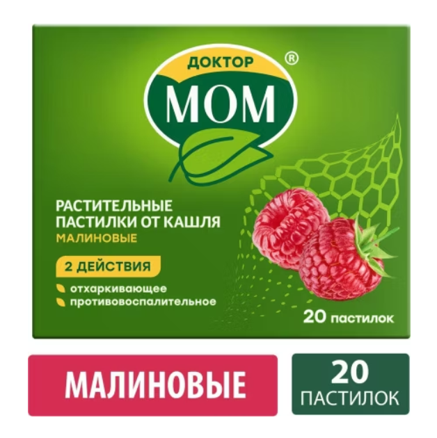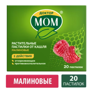 Доктор Мом растительные пастилки от кашля малиновые №20