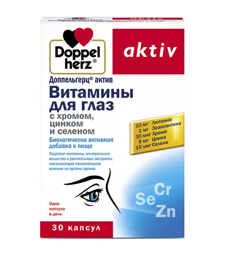 Доппельгерц актив Витамины для глаз с хромом, цинком селеном капсулы массой 1350мг №30