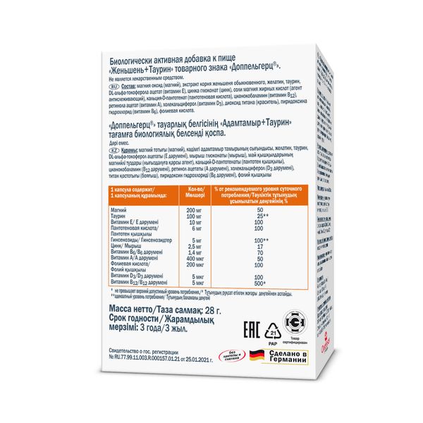 Доппельгерц актив Женьшень + Таурин капсулы массой 920мг №15