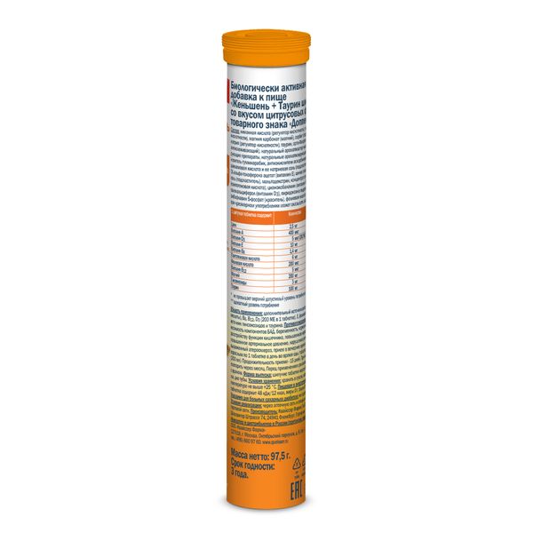Доппельгерц актив Женьшень + Таурин таблетки шипучие со вкусом цитрусовых фруктов массой 6,5г №15