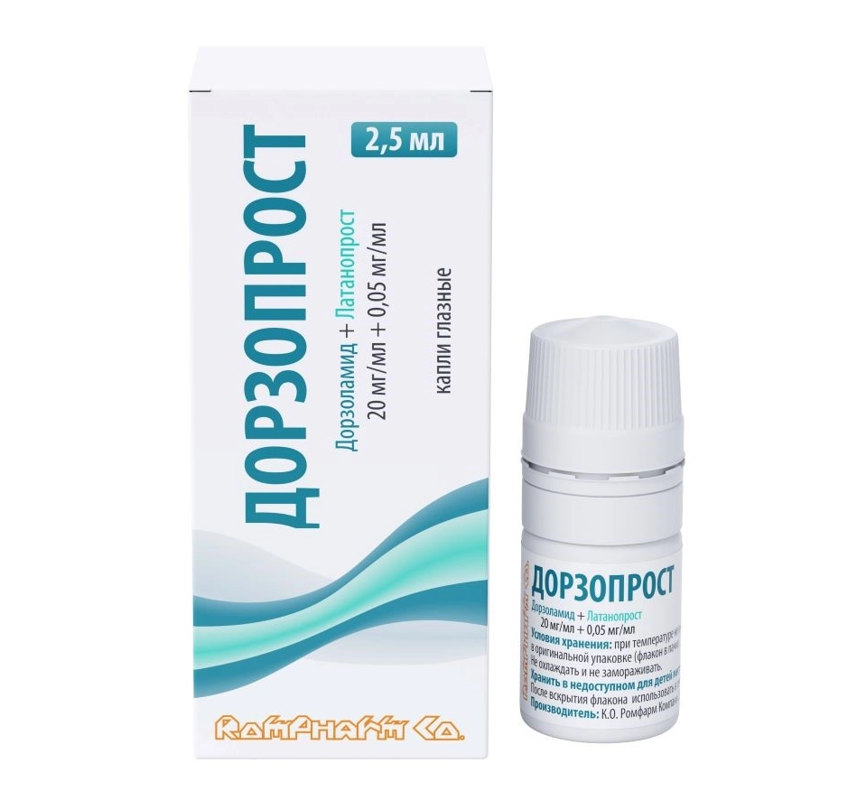Дорзопрост капли глазные 20мг/мл+0,05мг/мл флакон 2,5мл