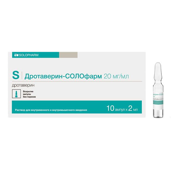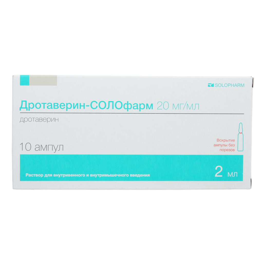Дротаверин Солофарм раствор для внутривенного и внутримышечного введения 20мг/мл ампулы 2мл №10
