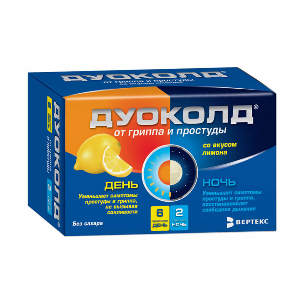 Дуоколд набор порошков для приготовления раствора для приёма внутрь со вкусом лимона пакетики 5г день №6 + ночь №2