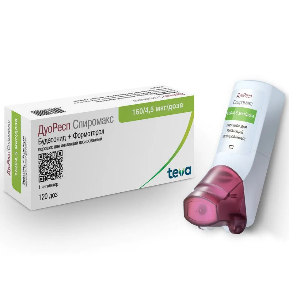 Препарат ДуоРесп Спиромакс содержит формотерол и будесонид, которые имеют разные механизмы действия и проявляют аддитивный эффект в отношении снижения частоты обострений бронхиальной астмы и хронической обструктивной болезни лёгких (ХОБЛ).