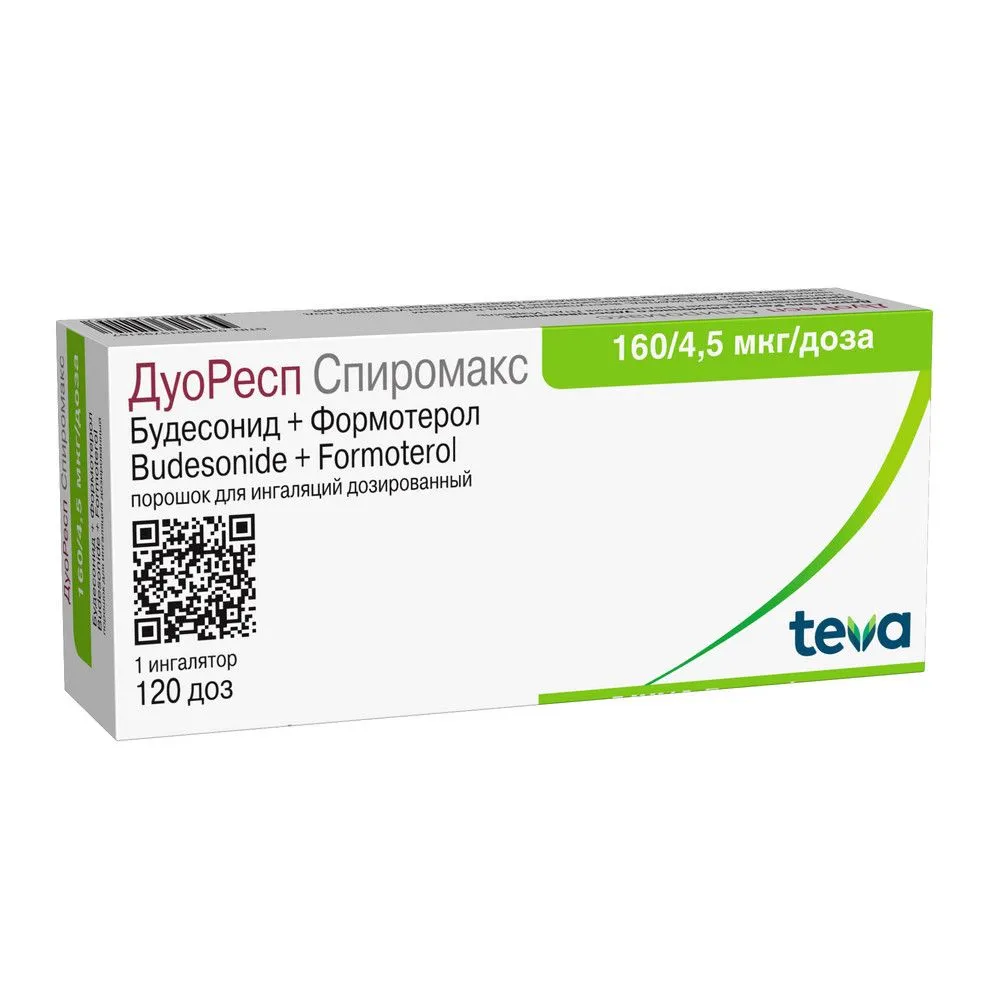 ДуоРесп Спиромакс порошок для ингаляций дозированный 160мкг+4,5мкг/доза ингалятор 120доз №1