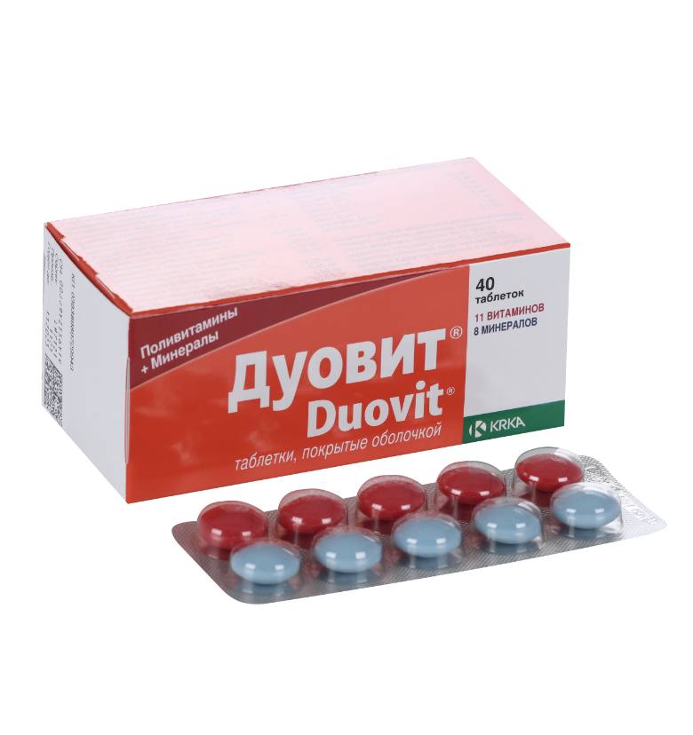 Препарат Дуовит® рекомендуется принимать внутрь, после завтрака.