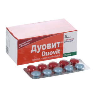 Препарат Дуовит® рекомендуется принимать внутрь, после завтрака.