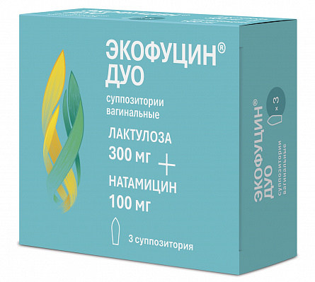 Экофуцин® ;ДУО, 300 мг + 100 мг, суппозитории вагинальные