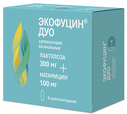 Препарат Экофуцин® ;ДУО представляет собой комбинацию активных действующих веществ — пребиотика лактулозы и противогрибкового антибиотика натамицина.