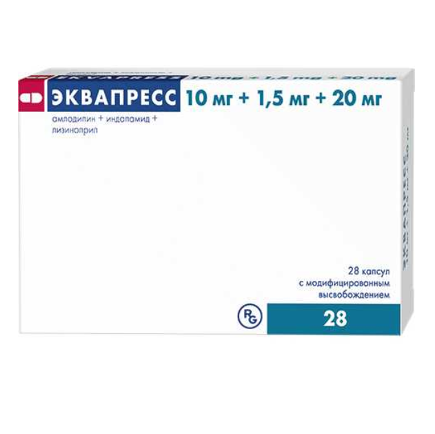 Эквапресс — фиксированная комбинация антигипертензивных компонентов амлодипина, индапамида и лизиноприла, которые обладают взаимодополняющими механизмами действия, позволяющими контролировать артериальное давление (АД), а также синергично оказывают кардиопротективное действие.
